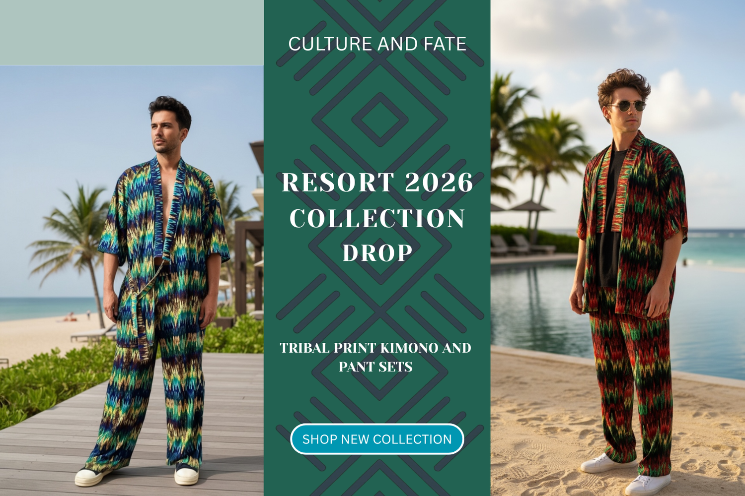 Tribal Remix Motif Print Kimono & Pant Set – Relaxed Fit Two-Piece Set