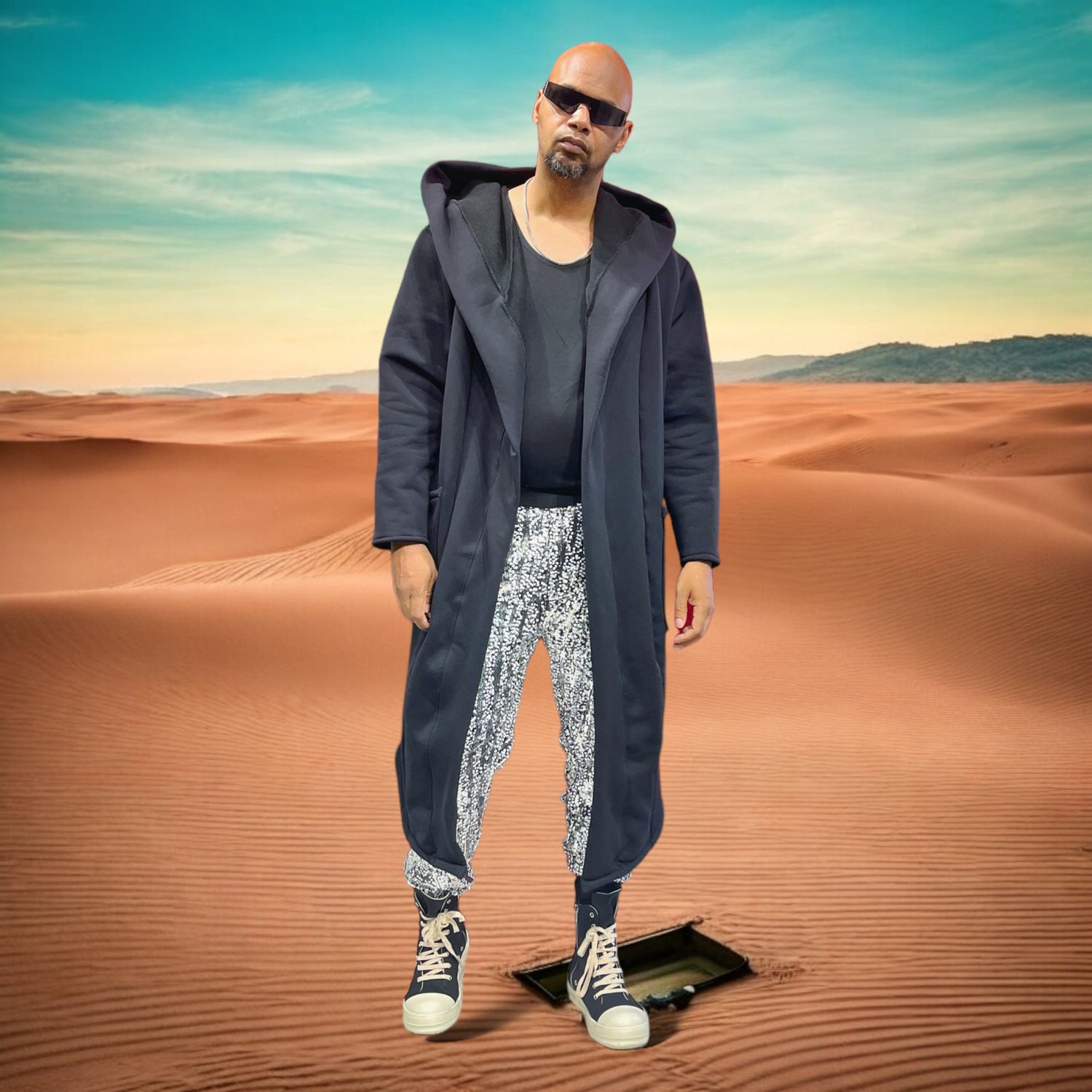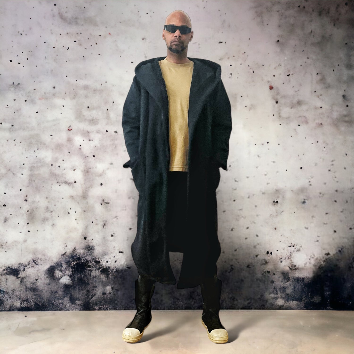 Stay cozy and stylish with our Black Oversized Hood Cloak. This Fleece Coat Cardigan features an elegant oversize hood that adds a touch of mystery to your look. The asymmetrical long-line design is reminiscent of Dune style Cardigans, making it the perfect addition to your Desert wear Clothing collection. Stay warm and fashionable wherever you go with this unique and versatile piece with pockets.