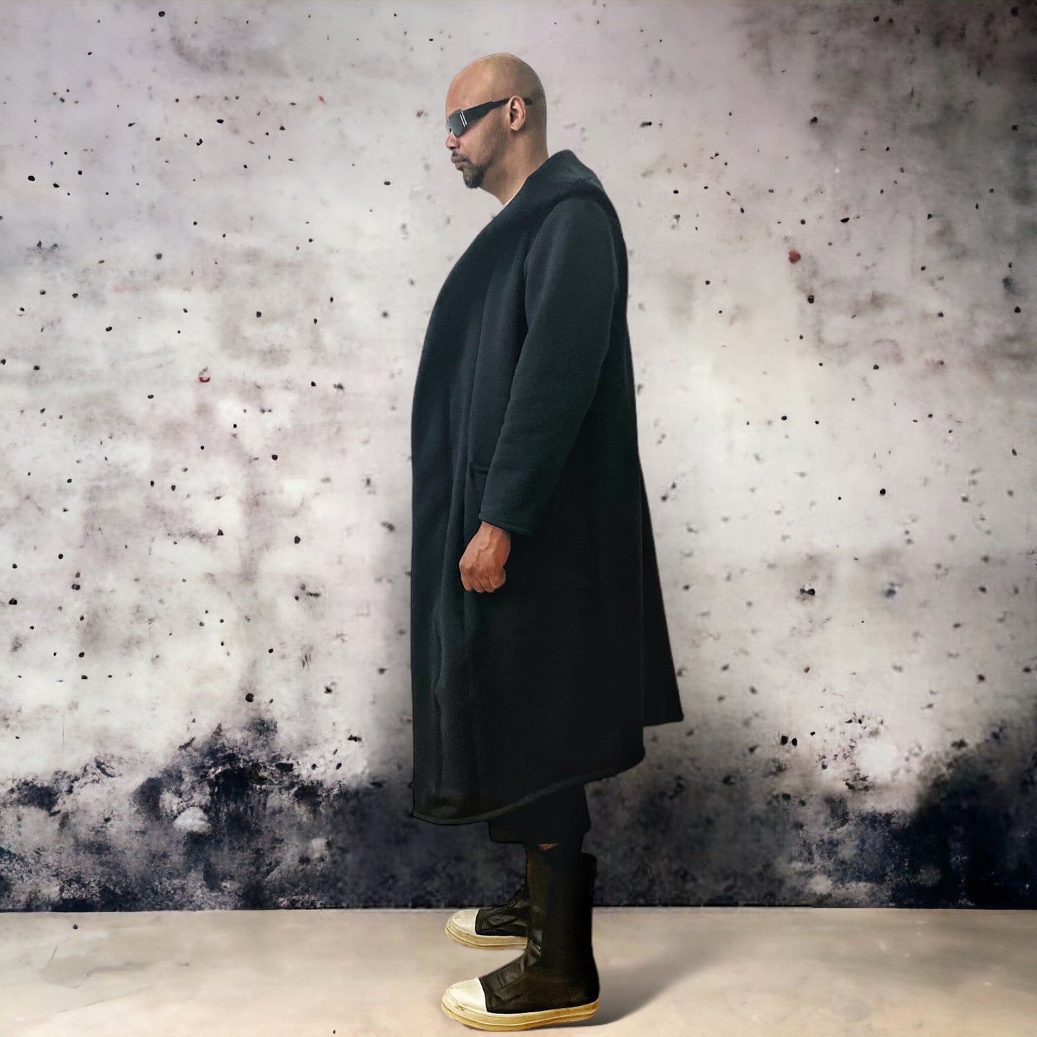 Black Oversized Hood Cloak - Cozy Fleece Coat Cardigan, Asymmetrical Long-line Cardigan - Dune Style Desert Wear