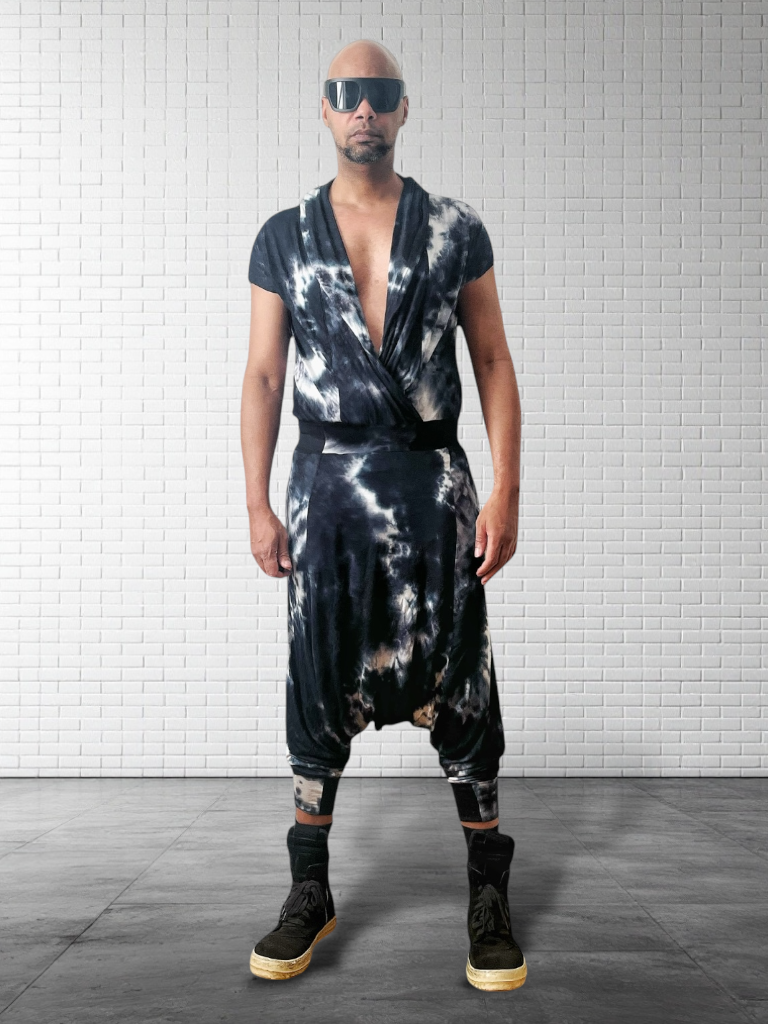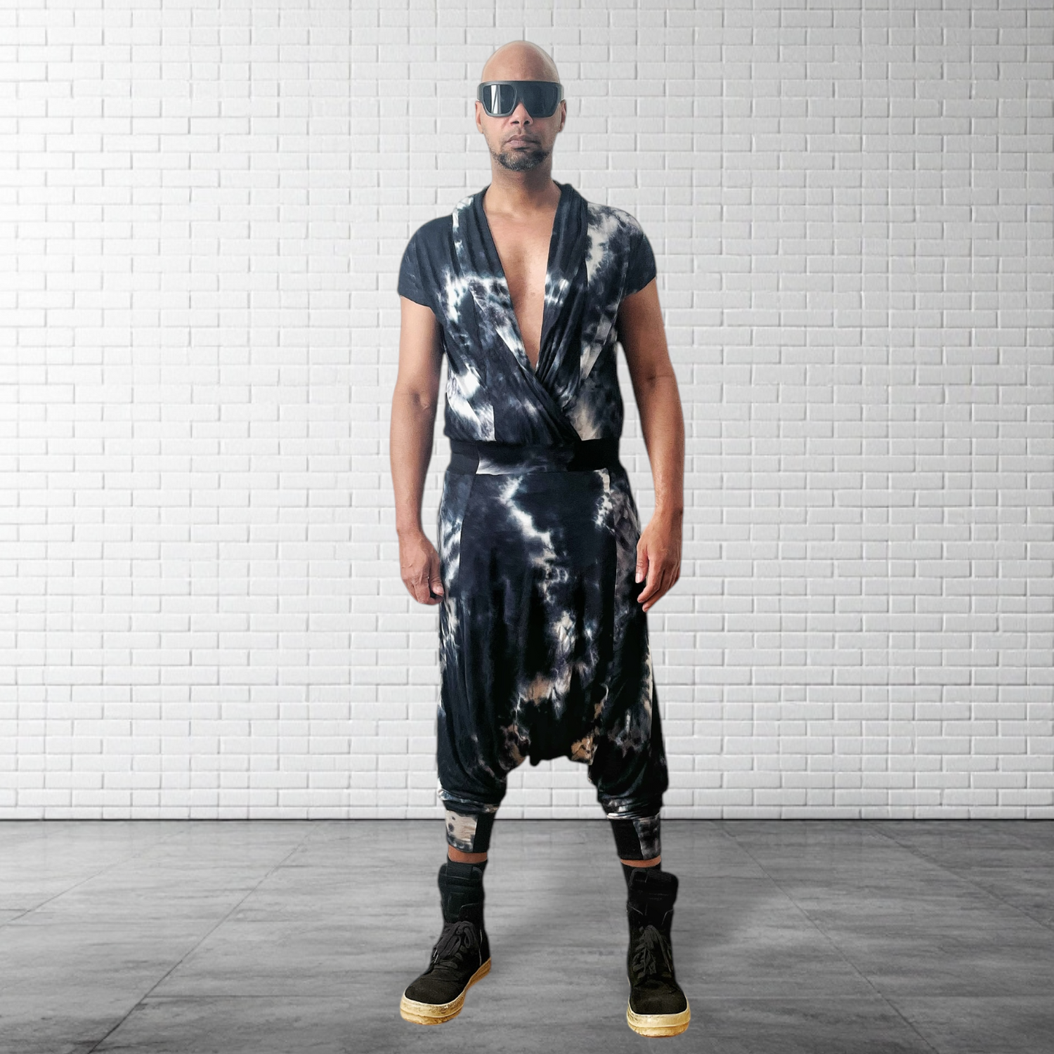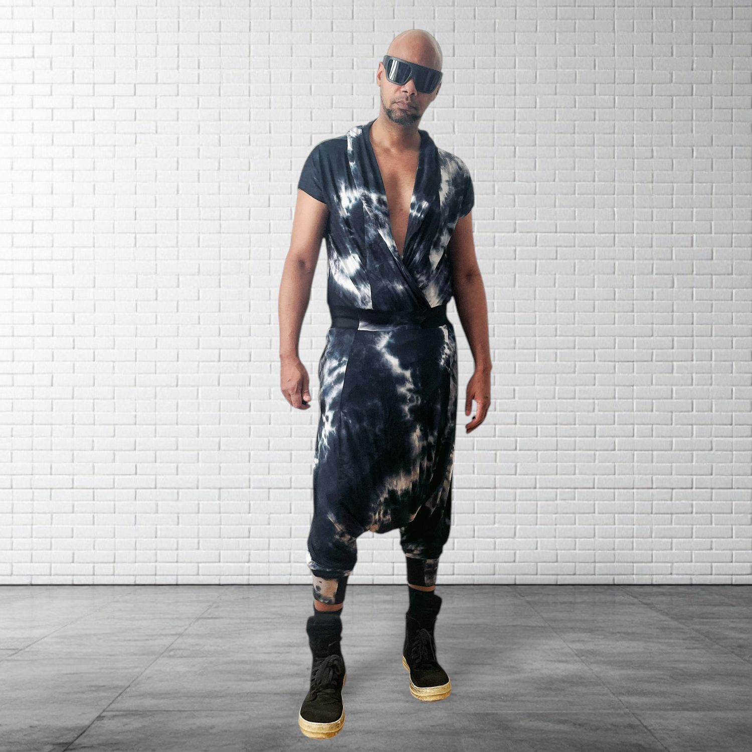 Mens Jumpsuit Drape Front Jersey Jumpsuit Cross Front attach Hoodie Tye Dye Jersey Mens Unisex