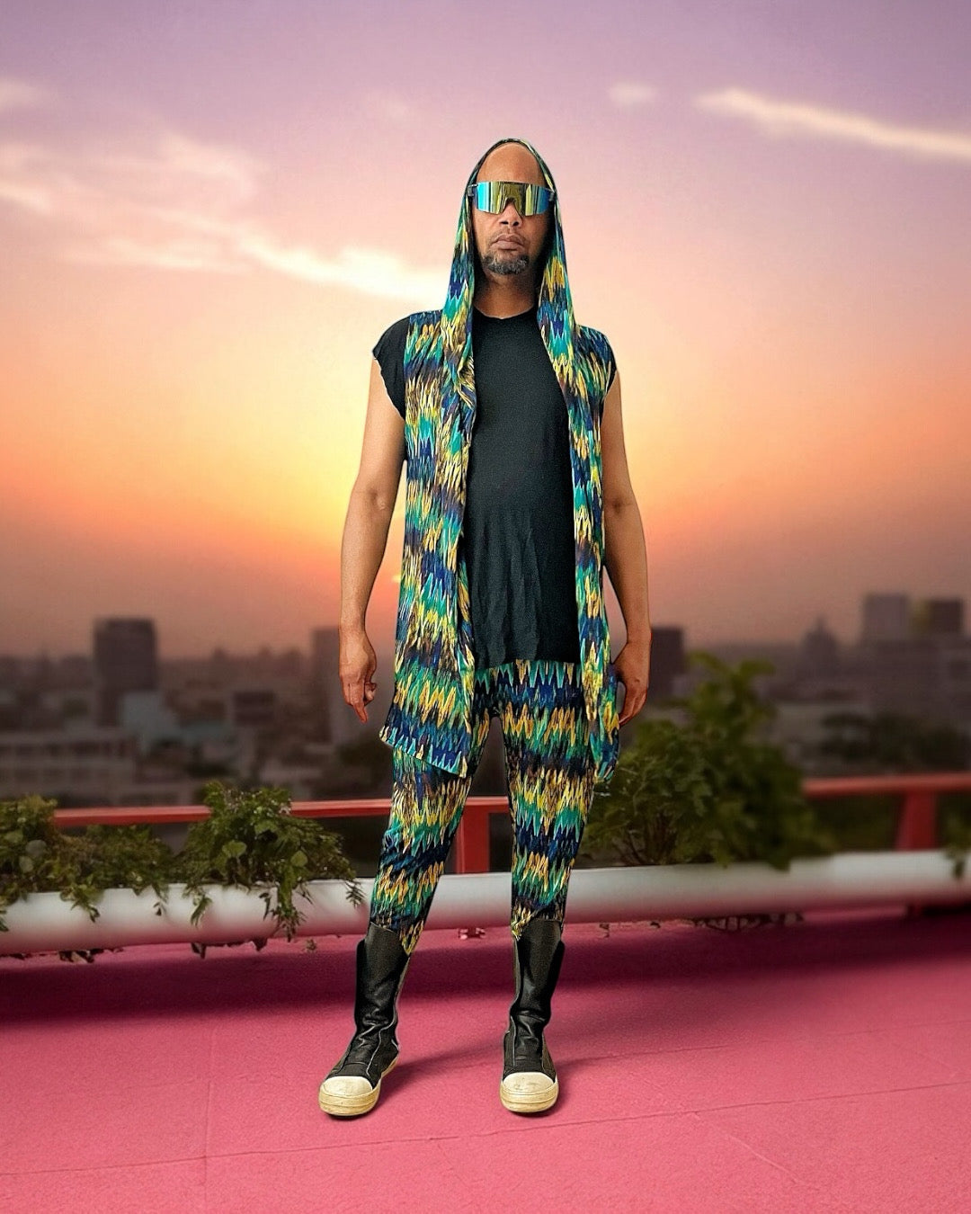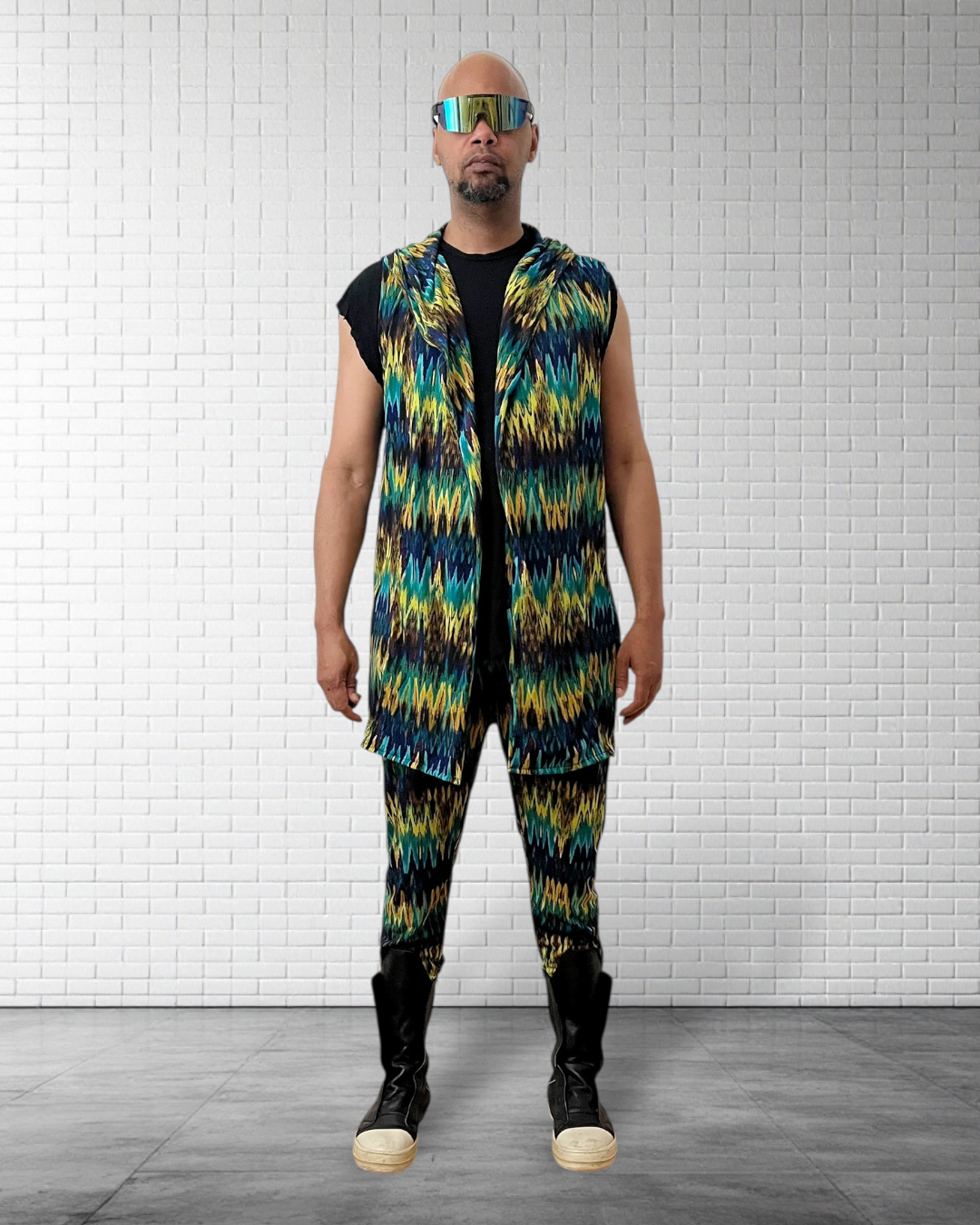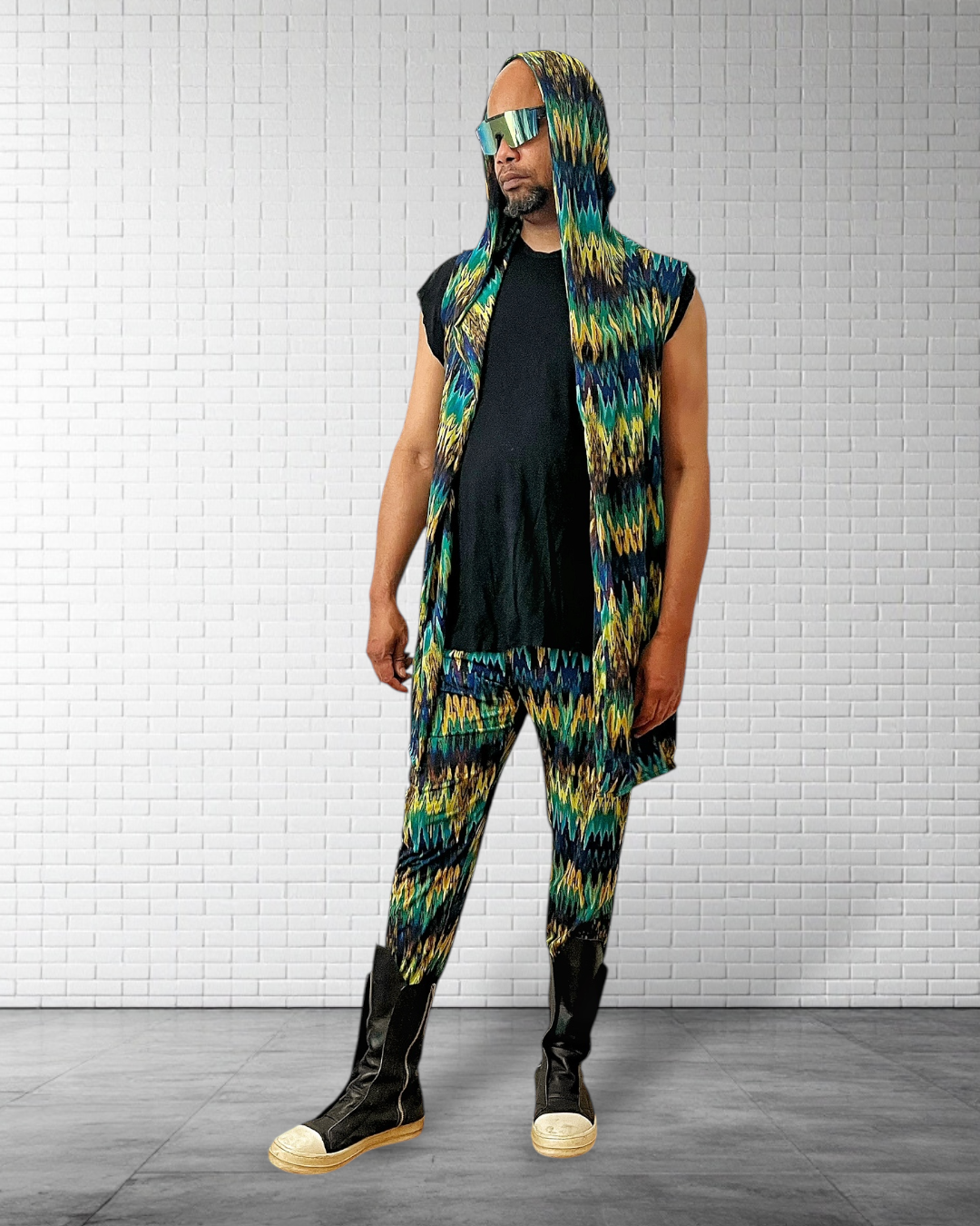 Festival Hooded Cardigan And Jogger Set – BurningMan | Tribal Print Men’s Festival Wear | Sleeveless Hoodie & Matching Pants | Rave Clothing