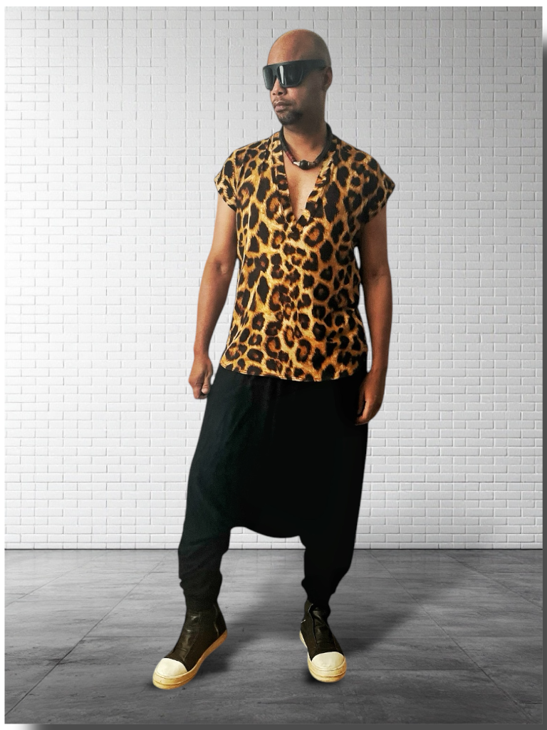 Deep V Neck Tee Shirt | Cheetah Print | Drop Shoulder T Shirt | Drape Jersey