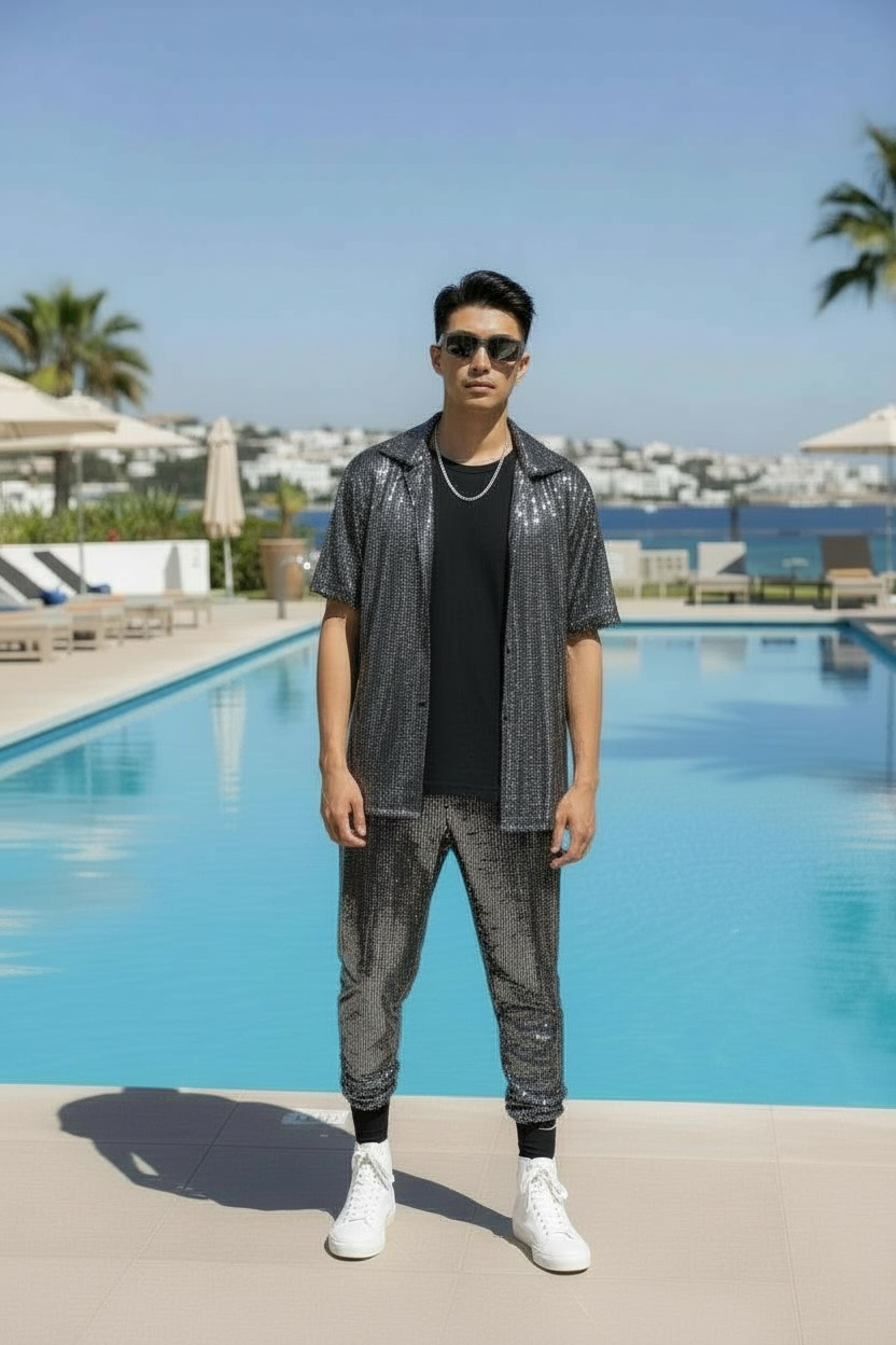 Silver Metallic Jogge Pant | Mens Festival Fashion Pant